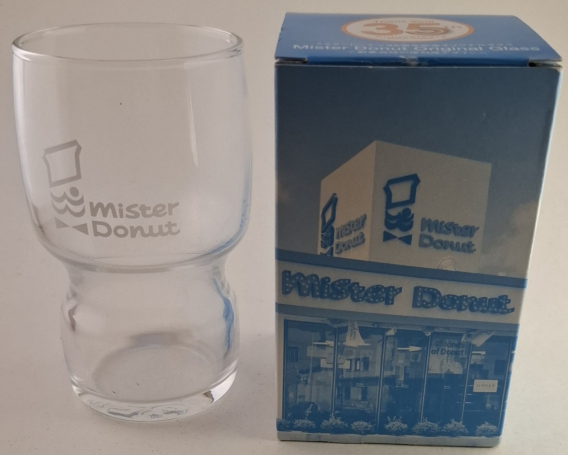 COLLECTIBLE: Mister Donut 35th Anniversary glass レトロ ミスド 35周年記念グラス ミスタードーナツ ノベルティ
